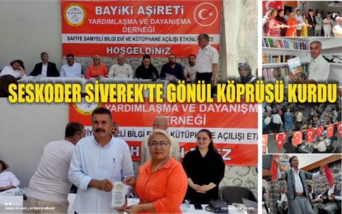 Safiye Samyeli Başkanın bizleri onere etmiştir. Türkiye'nin bir ucundan kalkıp gelip derneğimize bir kütüphane hediye eden SESKODER ailesine çok teşekkür ederiz. Bundan sonra daha sık bir araya gelecek ve daha nice güzel projelere birlikte imza atacağız. Amacımız Sivereğimizin tarihi ve kültürel yapısını, misafirperverliğimizi, örf, adet, gelenek ve göreneklerimizi tüm dünyaya tanıtmaktır. Bizler Bayki Aşireti olarak bunu kendimize bir görev edindik.Öncelikle duyarlı davranarak şehrimize gelen, derneğimizde bir kütüphane kuran SESKODER Genel Başkanı Safiye Samyeli Hanıma, Yönetim kurulu arkadaşlarına, farklı illerden şehrimize koşup gelen il temsilcilerine çok teşekkür ediyoruz. Derneğimizin ve kütüphanemizin kapıları Siverek Halkına sonuna kadar açıktır. Kitap okumak isteyen her insan derneğimize gelip istediği kitabı alıp okuyabilir, bizler halka hizmet için varız burada" Dedi.