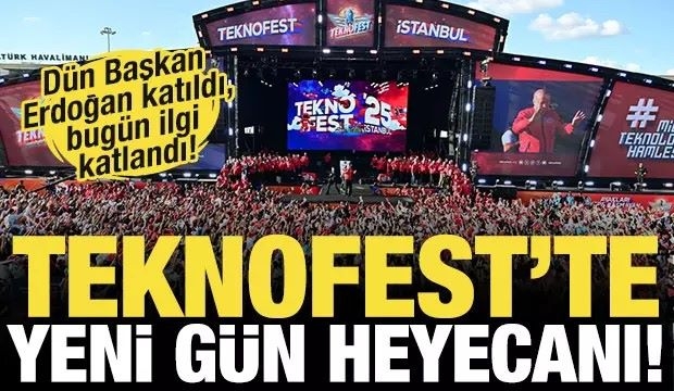 TEKNOFEST 2025, İstanbul Atatürk Havalimanı’nda yeni gününde de coşkuyla devam ediyor. Dün Cumhurbaşkanı Erdoğan’ın katıldığı festival, gençler ve ailelerin yoğun ilgisiyle teknoloji ve inovasyonun merkezi haline geldi.