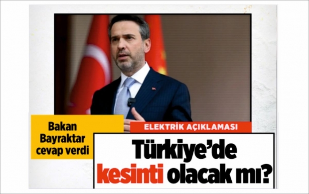 Enerji Bakanı Bayraktar, Türkiye'nin elektrik iletim ve dağıtım hatlarında genel bir kesintiye neden olacak hiçbir sorun bulunmadığını bildirdi.
