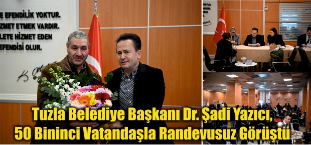 Tuzla Belediye Başkanı Dr. Şadi Yazıcı, perşembe günleri düzenlediği ‘Randevusuz Halk Günü’ buluşmaları kapsamında bu hafta 50 bininci vatandaşa ulaştı. Başkan Yazıcı ile görüşmek için belediyeye gelen 50 bininci vatandaşa çiçek takdim edildi.
