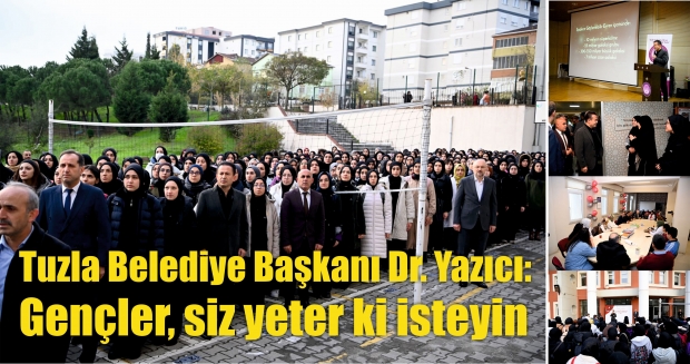 Tuzla Belediye Başkanı Dr. Şadi Yazıcı, Tuzla Halil Türkkan Kız Anadolu İmam Hatip Lisesi’ndeki Bayrak Töreni’ne katıldı. Yazıcı, okuldaki 12’nci sınıf öğrencilerine Temel Bilimler konusunda bir sunum yaptı. Sunumun ardından gençlerin sorularını yanıtlayan Başkan Yazıcı, “Benim Tuzla’ya katmaya çalıştığım şeylerden biri de eğitim öğretim hayatı ile sanayi iş birliğinin oluşmasını sağlamaktır. Bunu bir üniversite ile süslemeyi de düşünüyorum. Gençler için her türlü organizasyona hazırız, siz yeter ki isteyin, grupları oluşturun; biz hazırız” dedi.