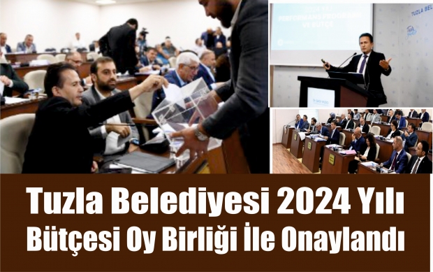 7’nci seçim dönemi ekim ayı meclis toplantıları 2’nci birleşimi Tuzla Belediye Meclisi’nde gerçekleştirildi. Mecliste 2024 yılının bütçesi oy birliği ile onaylandı. Tuzla Belediyesi meclis salonunda gerçekleştirilen ikinci birleşimde meclis üyeleri bütçe kalemlerini tek tek görüşerek oyladı. İlk oturumda komisyondan gelen 18 rapor meclis üyelerine sunuldu ve çoğunluğunun komisyondan geldiği şekliyle kabulüne oy çokluğu ile karar verildi. Gelir-gider denkliği sağlanarak oluşturulan 2 milyar 956 milyon 324 bin 900 TL’lik bütçe de oy birliği ile meclisten geçti.