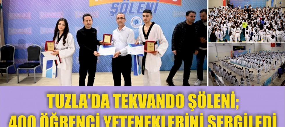 7-18 yaş arasındaki 400 öğrenci, öğrendikleri tekvando hareketlerini göstererek izleyenleri etkileyen performanslar sergiledi. Şölende, öğrencilerin kuşakları, Tuzla Belediye Başkanı Dr. Şadi Yazıcı'nın elinden takdim edildi.