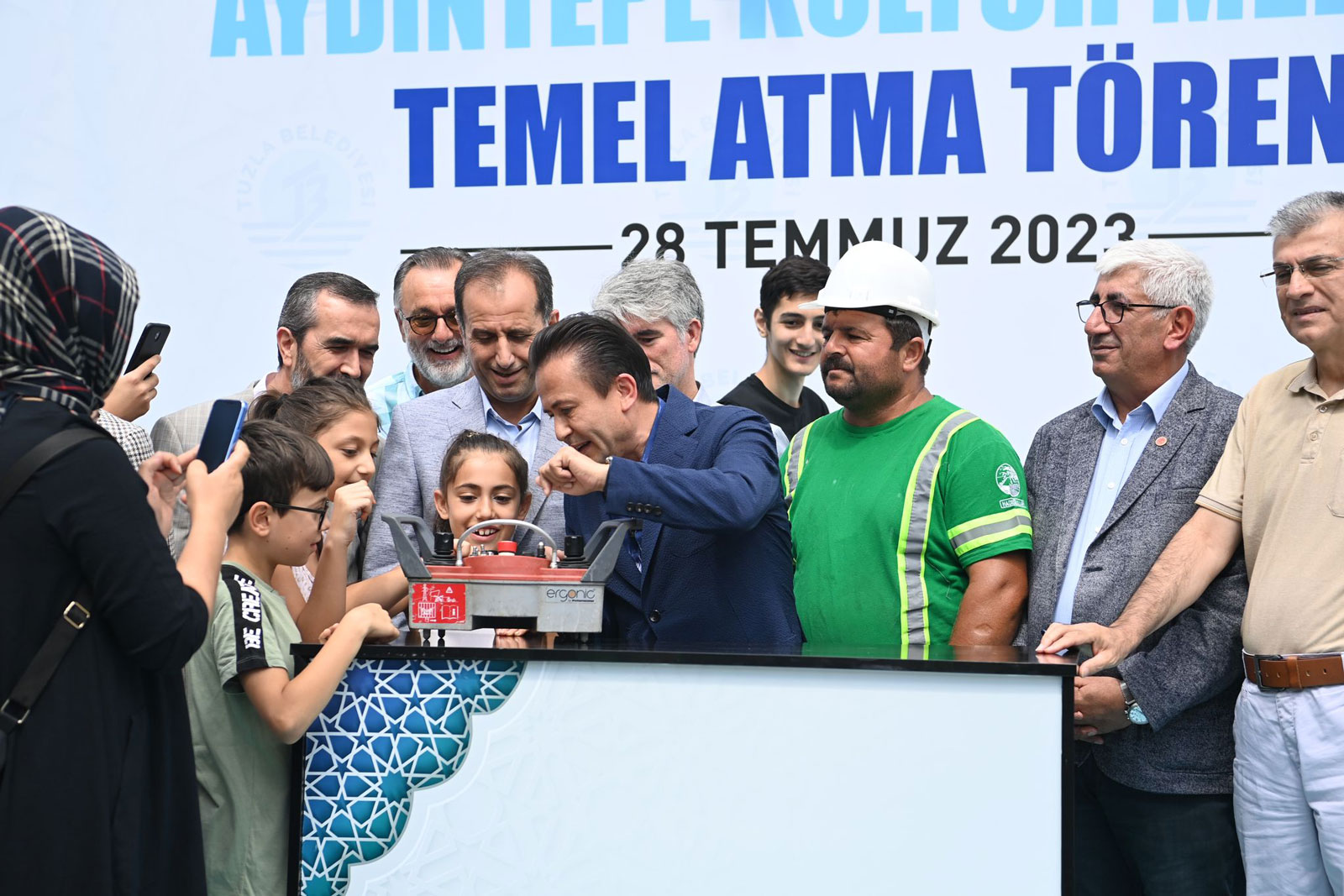 Tuzla Belediye Başkanı Dr. Şadi Yazıcı’nın 2019 yerel seçimleri öncesinde verdiği vaatler arasında yer alan ve Tuzla Belediyesi’nin ilçedeki 14’üncü kültür merkezi olacak olan Aydıntepe Kültür Merkezi’nin temeli atıldı. İçerisinde Tuzla Belediyesi’nin eğitim birimleri arasında yer alan Anne Çocuk Eğitim Merkezi ve Bilgi Evi’nin yanı sıra kütüphane ve çok amaçlı salonun yer alacağı zemin artı 4 katlı kültür merkezi sadece Tuzlalıların değil İstanbullular için de çok önemli etkinliklere ev sahipliği yapacak. Temele ilk harcı dökecek olan butona çocuklarla birlikte basan Başkan Yazıcı,” AK Parti Belediyeciliğinin, yerel yönetimler anlayışının, geneldeki hizmet anlayışının yerele yansıması olan önemli göstergelerinden birisi de sosyal ve kültürel belediyeciliktir. Yardımlaşmadır, dayanışmadır, gelişmedir, çocuğa, gence, anneye, toplumdaki tüm dezavantajlı kesimlere dokunmaktır. Sayın Cumhurbaşkanımızın ifadesi ile onlara bizim hizmetkar olmamız ve bu anlayışla yapmış olduğumuz hizmetlerin bir tanesinin temelini bugün atıyoruz” dedi.