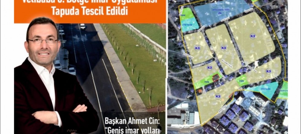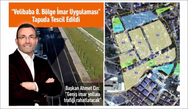 Pendik Belediyesi “Velibaba Mahallesi’nde “8. Bölge İmar Uygulamasını” tapuda tescil ettirdi. 300 hak sahibinin bulunduğu bölgede yeni parseller üretildi. Belediye Başkanı Ahmet Cin, yeni parsellerde 1 ortaöğretim tesis alanı, 1 sosyal kültürel tesis, 2 dini tesis alanıyla 5.000 m² park alanı bulunduğunu belirterek “Geniş imar yolları, trafik sirkülasyonu açısından bölgeyi ve kent genelini rahatlatacak.”dedi.