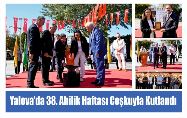 Yalova’da 38. Ahilik Haftası, AHİSİAD’ın organizasyonuyla; Yalova Valisi Dr. Hülya Kaya ve AHİSİAD Genel Başkanı İbrahim Çam’ın katılımıyla seminer, şed kuşatma töreni, Ahi Pilavı ikramı ve el sanatları sergisiyle kutlandı.